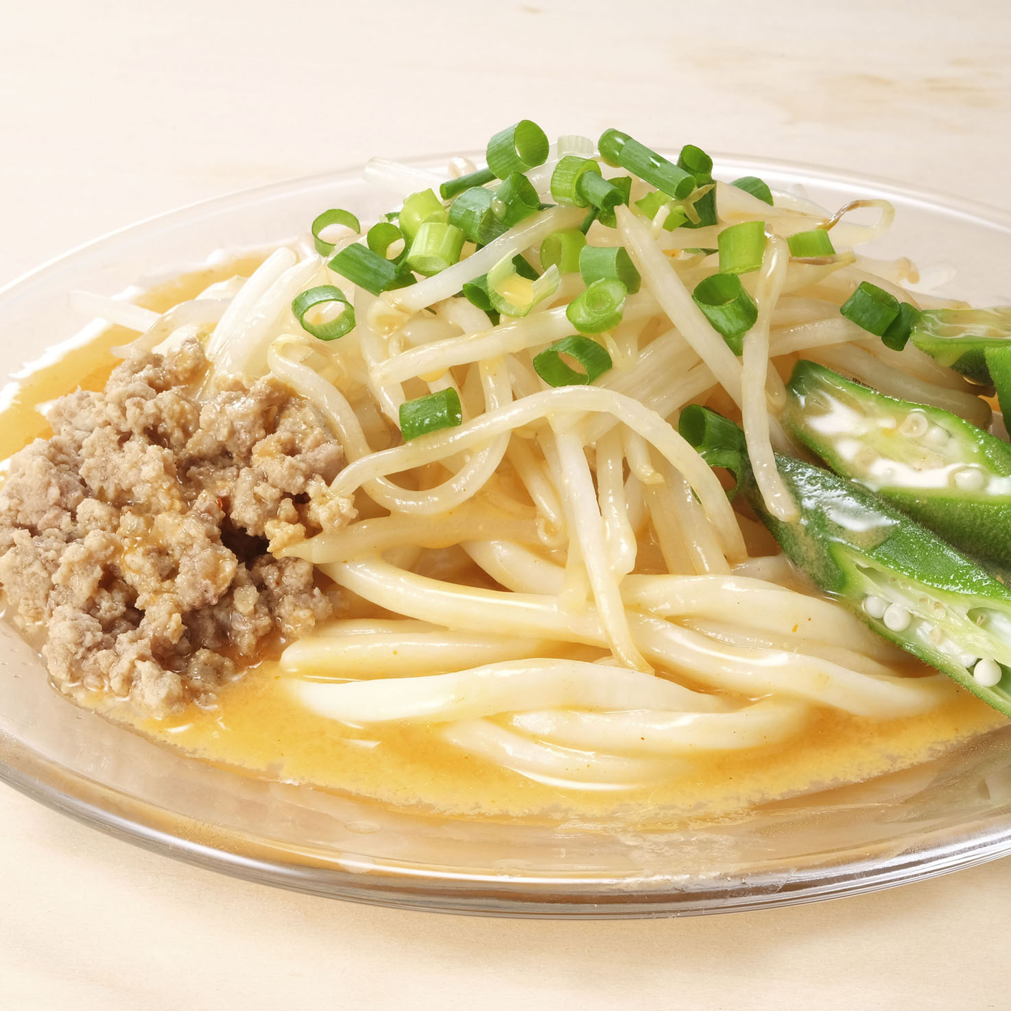 みそにとんこつエキス・ねりごまのコクを加え、ごま油・四川省産青花椒の風味を効かせた、ピリ辛胡麻みそ仕立てのサラダうどん用つゆです。