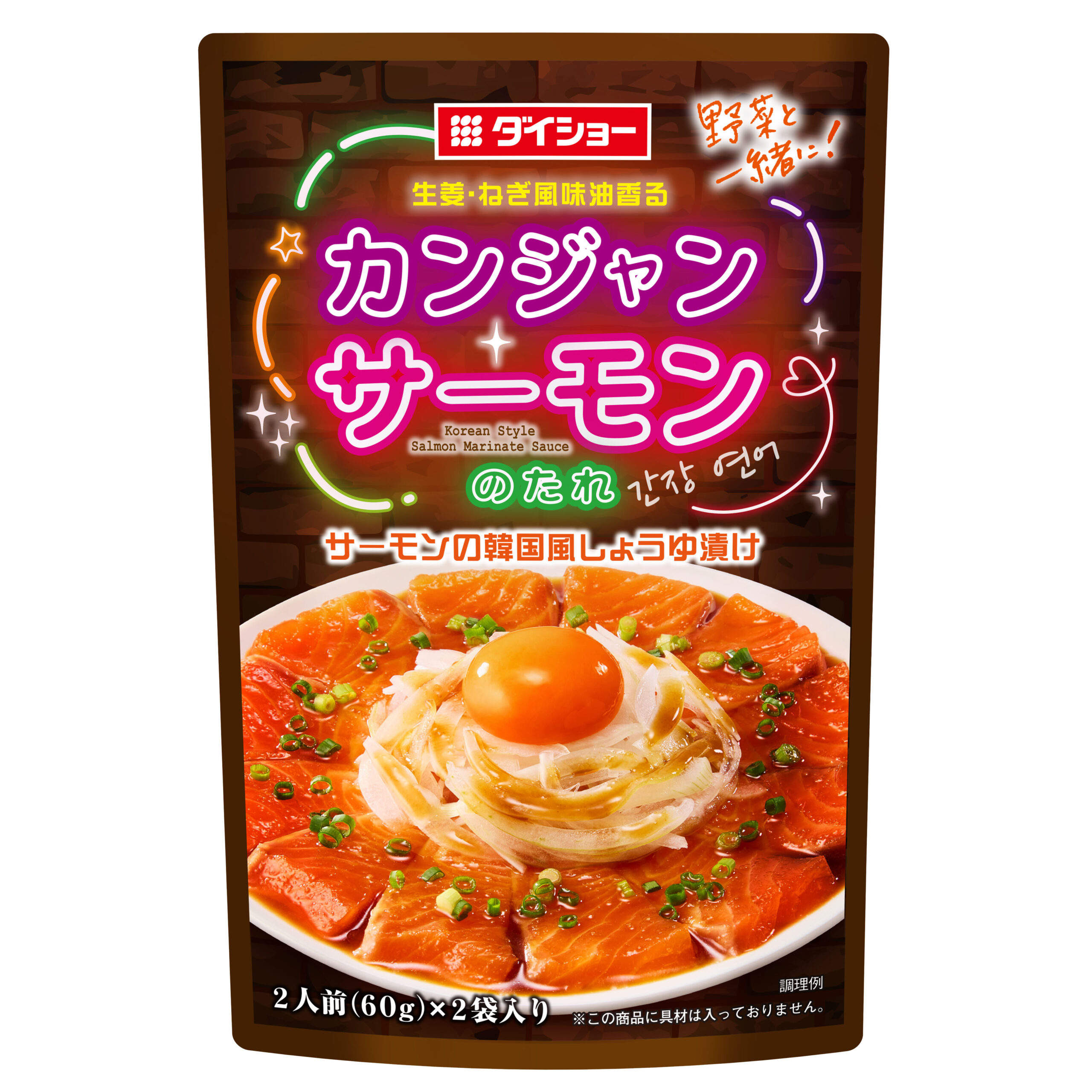 しょうゆに生姜の香りと魚醤のコクを効かせ、にんにく・ねぎ風味油・青唐辛子で風味よく仕上げました。 サーモンを漬け込むだけで、簡単にサーモンの韓国風しょうゆ漬けをお楽しみいただけます。