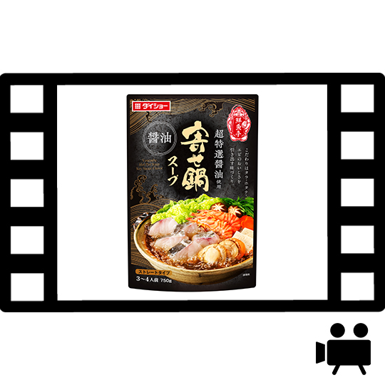長崎県産焼きあご・北海道産日高昆布・焼津産鰹節の魚介だしの旨みに、地鶏だしのコクを合わせた醤油仕立ての鍋スープです。超特選醤油と純米酒で風味よく仕上げました。