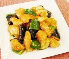 イカと夏野菜のチリソース炒め